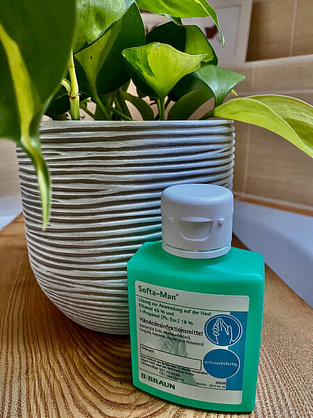 - Auch für die Patienten steht Desinfektionsmittel bereit.
